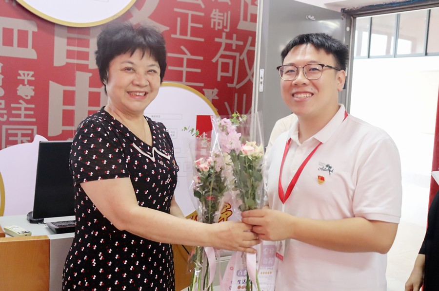 随后,活动进入温馨而动人的环节——新入职教师向老教师送祝福。朝气蓬勃的新入职教师,手捧鲜花逐一向老教师献上了最真挚的节日祝福,现场掌声不断,洋溢着浓厚的师徒情谊和传承气息。