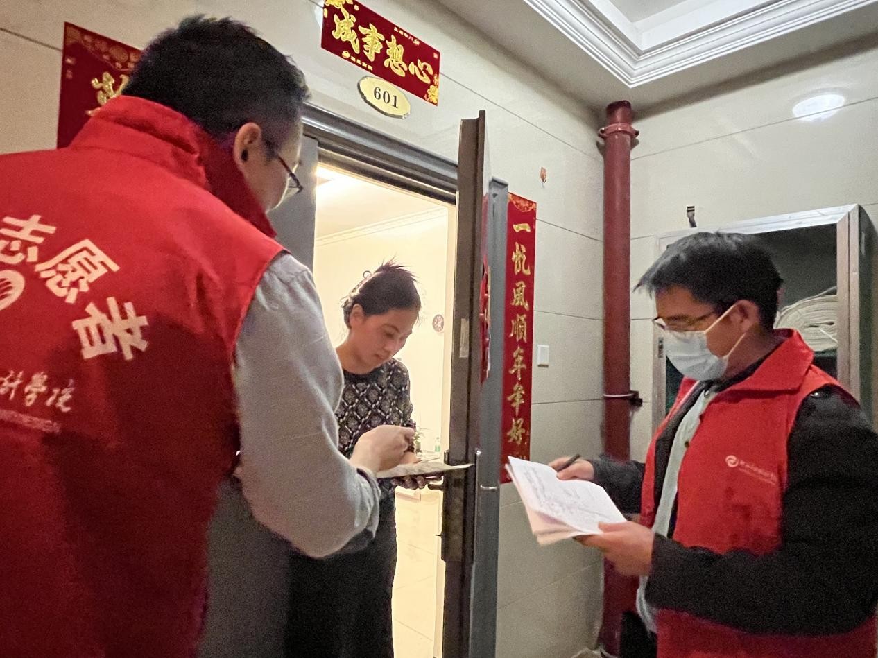 支部书记周斌带领党员同志进行了问卷入户调查