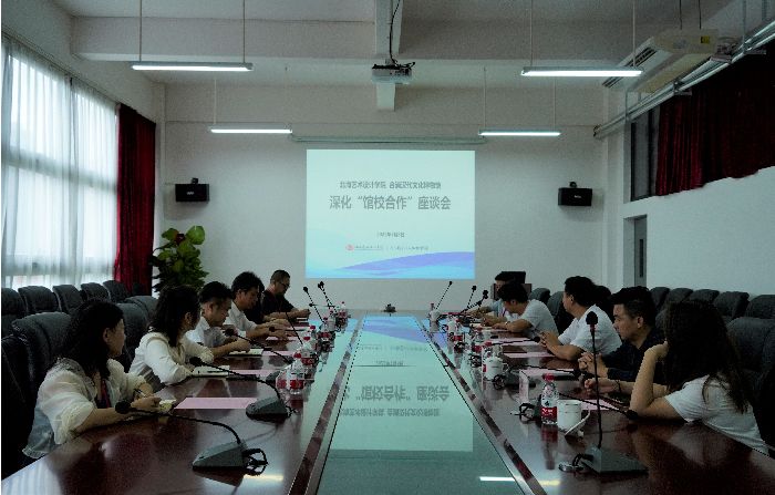 7月9日,我校与合浦汉代文化博物馆在西校区图书馆五楼会议室洽谈馆校合作事宜。合浦汉代文化博物馆馆长廉世明,我校副校长胡胜,教务处处长武鹏程,设计艺术学院院长李林平,动画与传媒学院书记孙永辉,创新创业学院院长云曼,设计艺术学院副院长白建强,人文教育学院副院长李水亮等领导以及骨干教师出席本次座谈会。座谈会由白建强副院长主持。