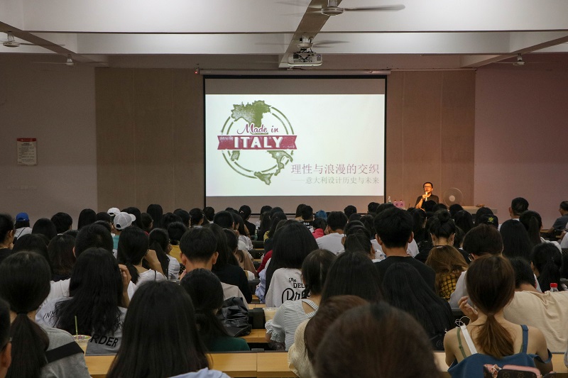 2018年6月3日9:00于我校西校区伦理楼107,清华大学美术学院副院长、著名设计师、设计评论家、中国建筑学会室内设计分会理事长、环境建设艺术咨询研究所所长苏丹带来一场题为《理性与浪漫的交织——意大利设计历史与未来》的精彩讲座,广大师生现场聆听讲座。