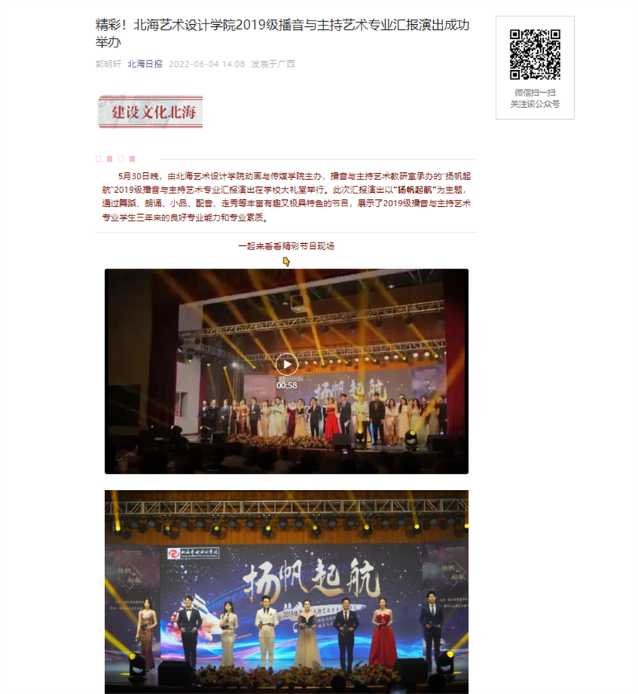 北海日报:北海艺术设计学院2019级播音与主持艺术专业汇报演出成功举办