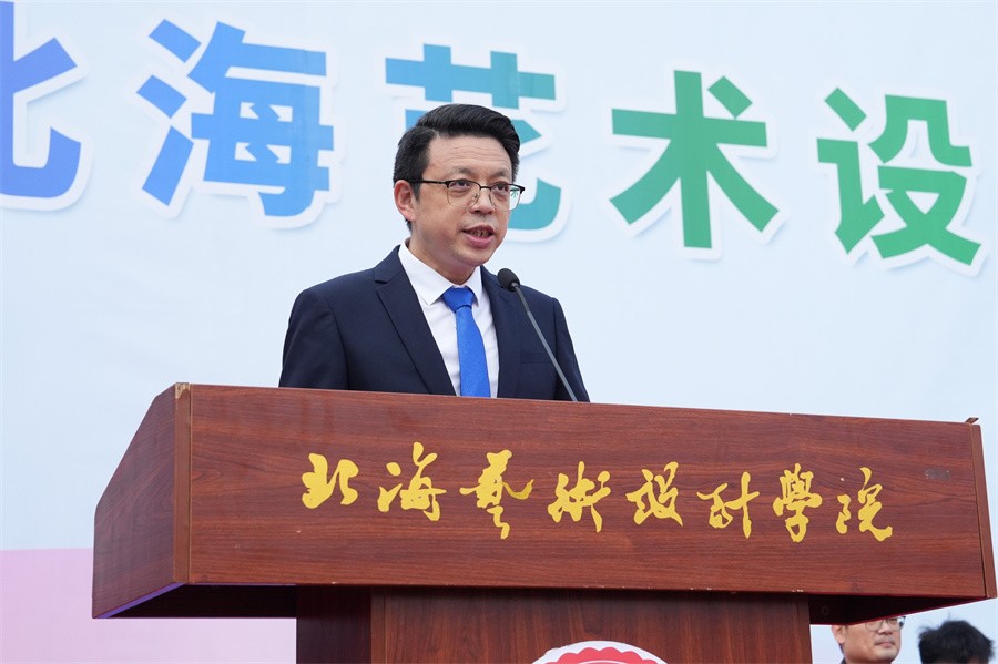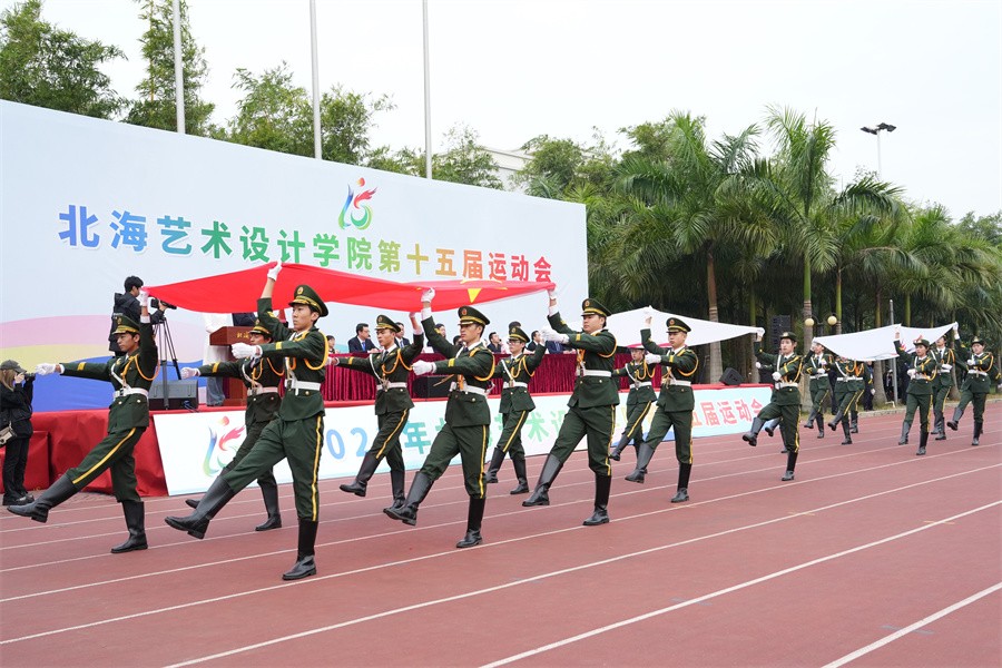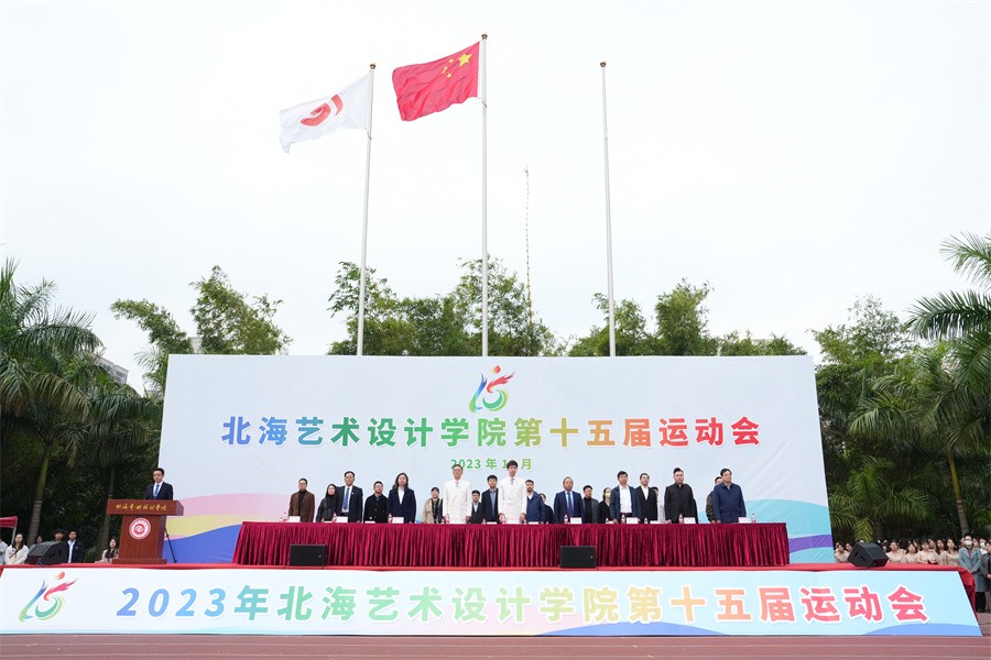 在学校党委书记范徽忠的高声宣布下,礼炮齐响、彩烟飞扬,直冲云霄,北海艺术设计学院第十五届运动会正式进入为期两天的比赛日程。