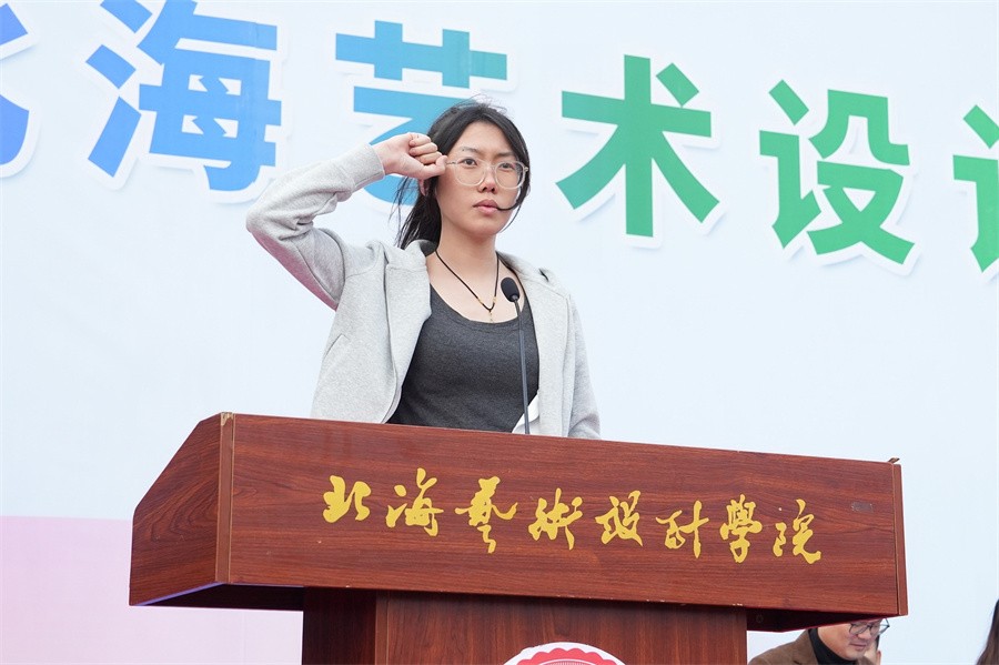 建筑与环境艺术学院环境设计专业2214班学生侯嘉欣代表运动员宣誓