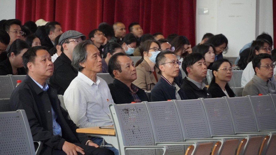 12月9日,学习贯彻党的二十届四中全会精神自治区党委讲师团特聘教授(专家)宣讲报告会(北海艺术设计学院专场)在我校西校区大礼堂举行。自治区党委讲师团特聘教授(专家)、广西大学马克思主义学院教授雷德鹏作宣讲报告。我校党委书记覃宪儒、校长卢新华等在家校领导、中层领导干部、党员、教师与学生代表到场聆听报告会。我校党委副书记刘承初主持报告会。