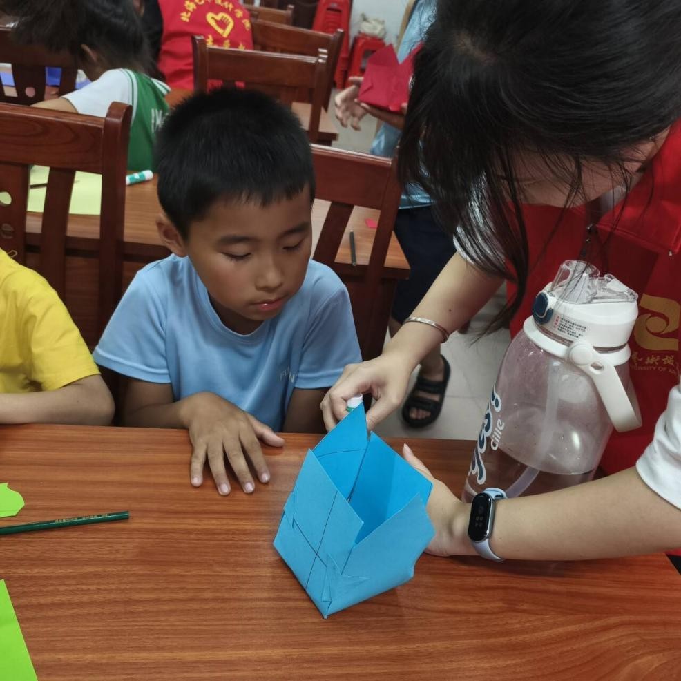 手工课堂上,志愿者引领孩子们踏上一场艺术探索之旅。孩子们在彩泥的塑形中学会色彩与形态的创新搭配;在折纸折叠与树叶拼贴中感悟自然的奇妙与魅力;在垃圾分类箱制作中学会垃圾分类知识。志愿者鼓励小朋友大胆尝试,用双手创造属于自己的艺术作品。别开生面的手工课堂不仅展现了小朋友们的才华和创意,还传递了绿色环保的理念。
