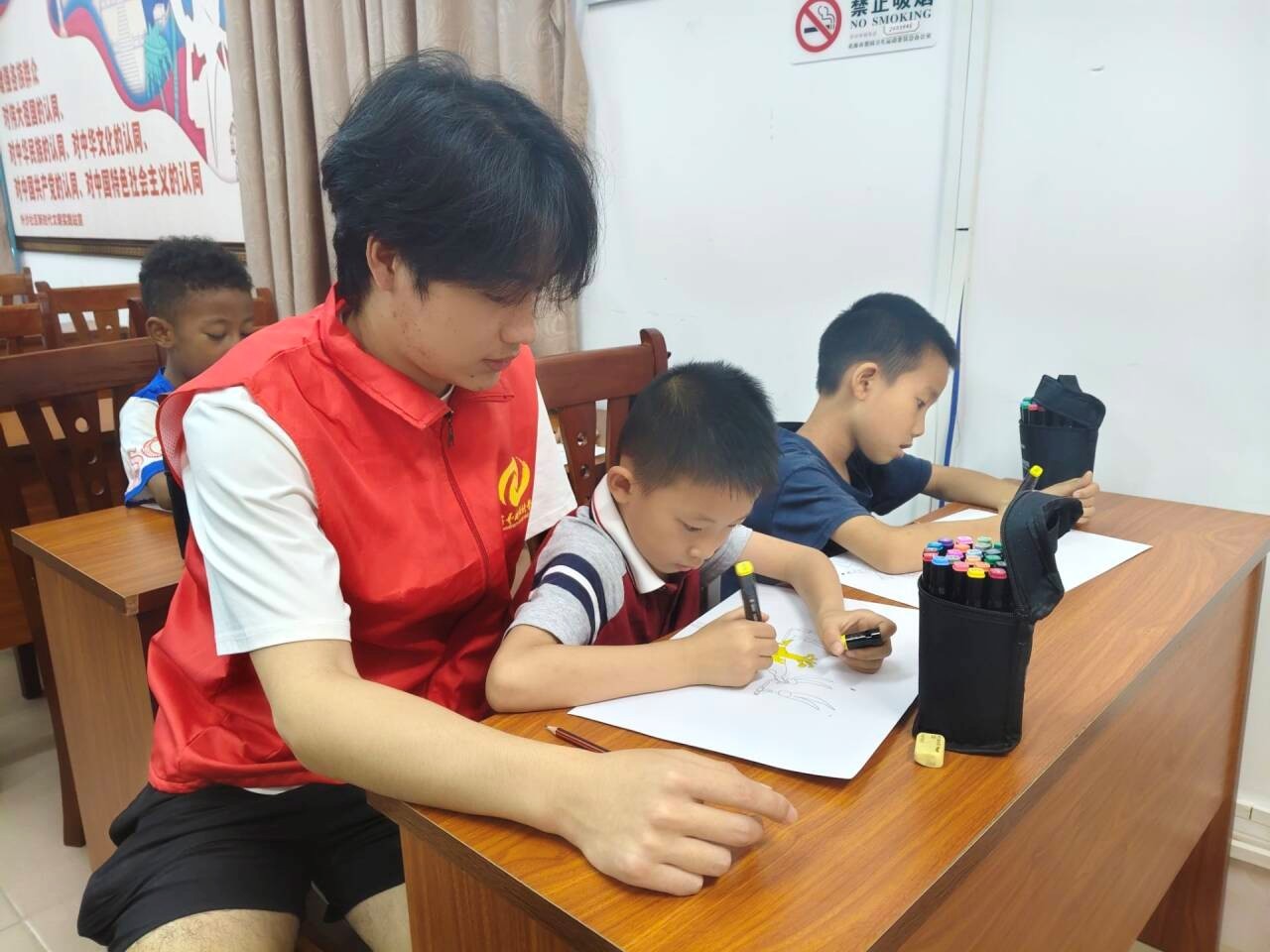 为深入学习宣传贯彻习近平总书记关于广西工作论述的重要要求,进一步弘扬“奉献、友爱、互助、进步”的志愿服务精神,本学期我校团委青年志愿者协会组织50余名志愿者在外沙社区共开展六次“周末‘艺’课堂”社区支教活动。
