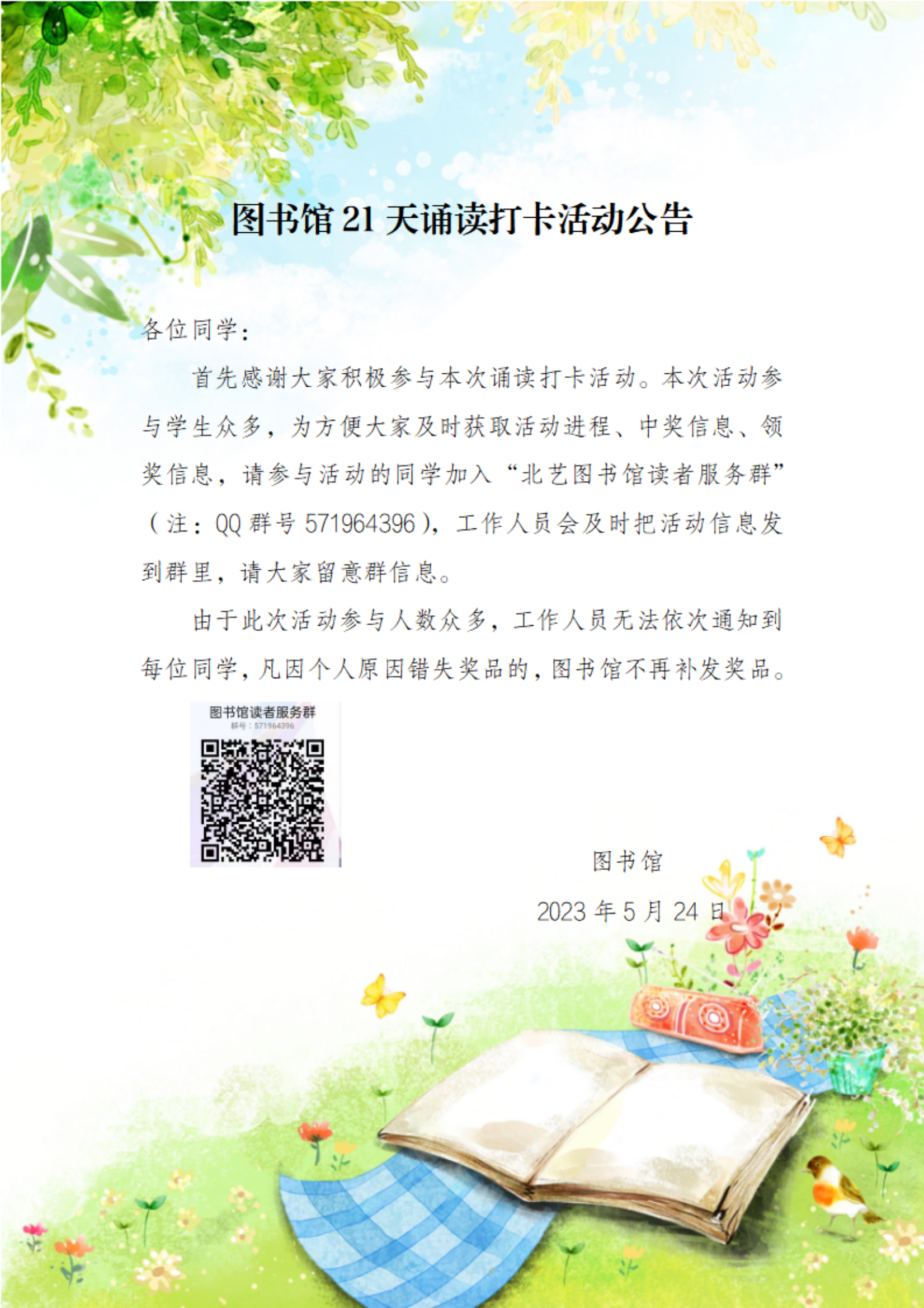 图书馆21天诵读打卡活动公告