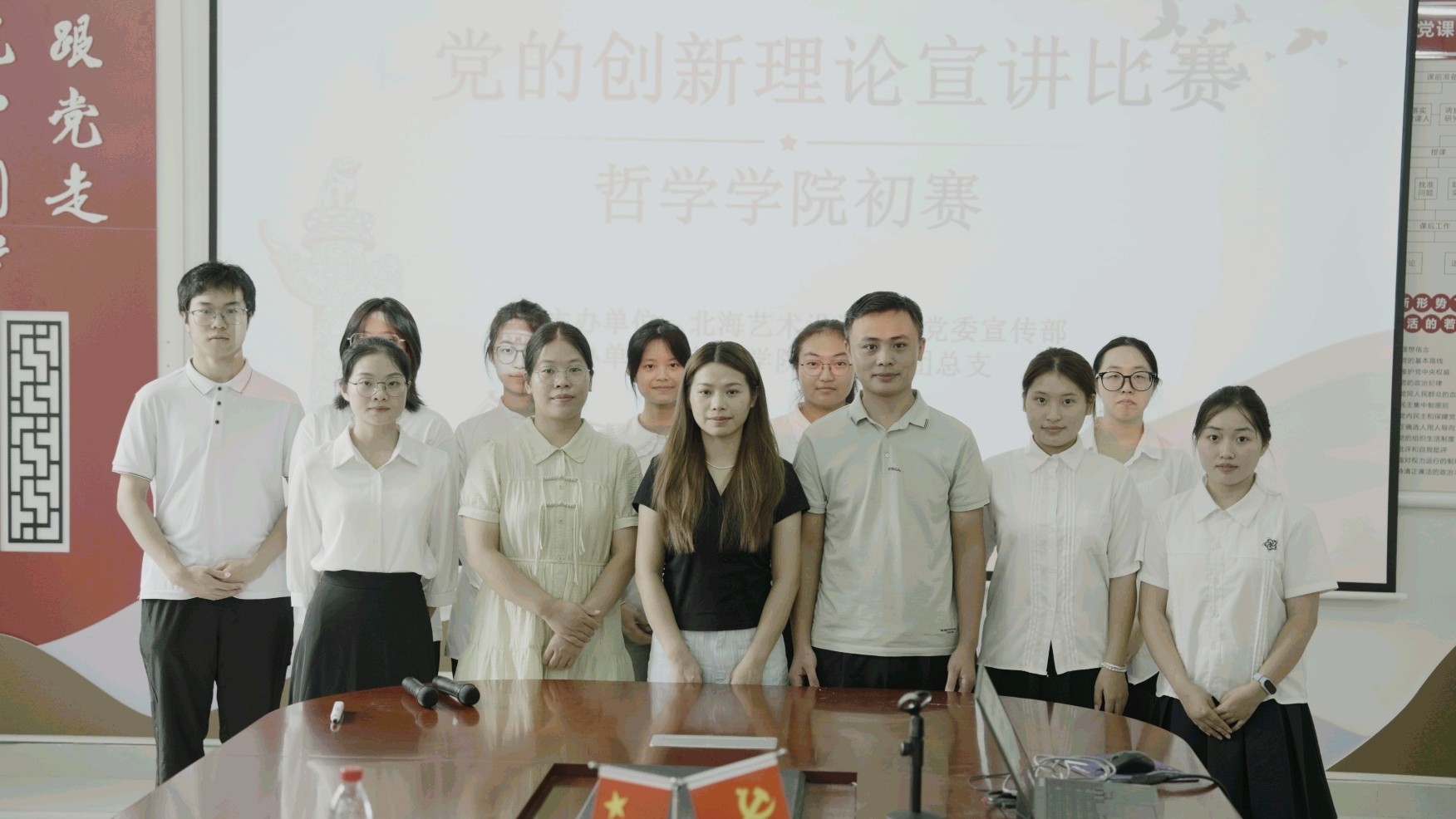深入学习贯彻习近平新时代中国特色社会主义思想,不断增进我校青年学子对党的创新理论的理解和认同学校党委宣传部联合各二级学院,组织开展党的创新理论宣讲大赛。哲学学院党支部及团总支积极响应,于10月16日中午在西校区公德楼204会议室举办院级初赛。哲学学院党支部书记谢伟、副院长覃传茵及学院综合办谢佩玲老师出席活动并担任评委。
