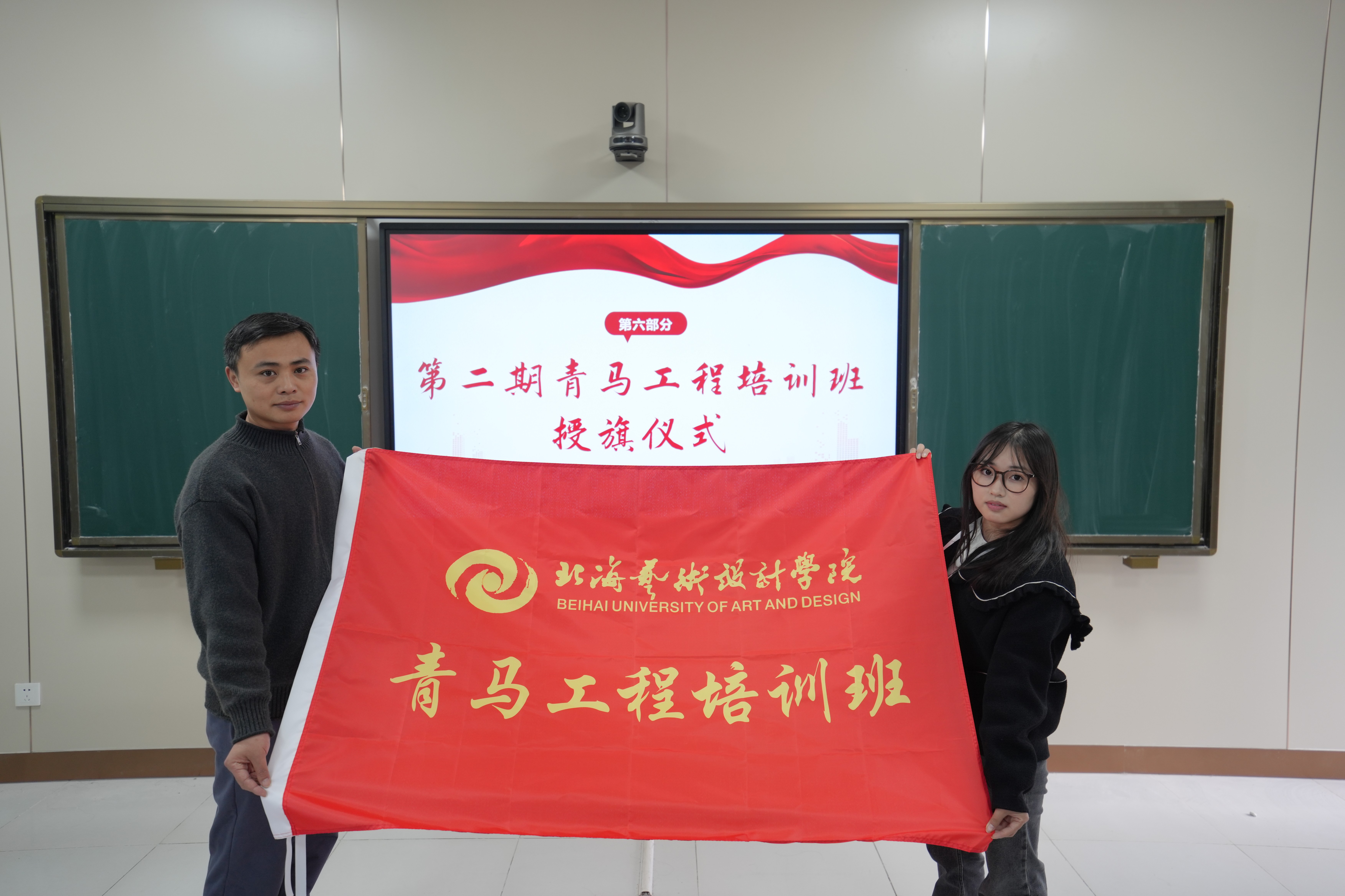仪式最后,哲学学院党支部书记谢伟将班旗授予班长余莉,至此,第二期青马工程培训班正式启程。