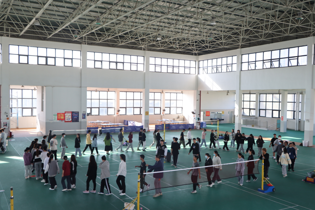 首先进行的是团队分组活动,由裁判组织同学们围成一个圆圈依次报数,以“团结就是力量”中字的顺序报数,报到相同字样分为一组。这样分组是为了让同学们可以多认识朋友,促进人际关系。