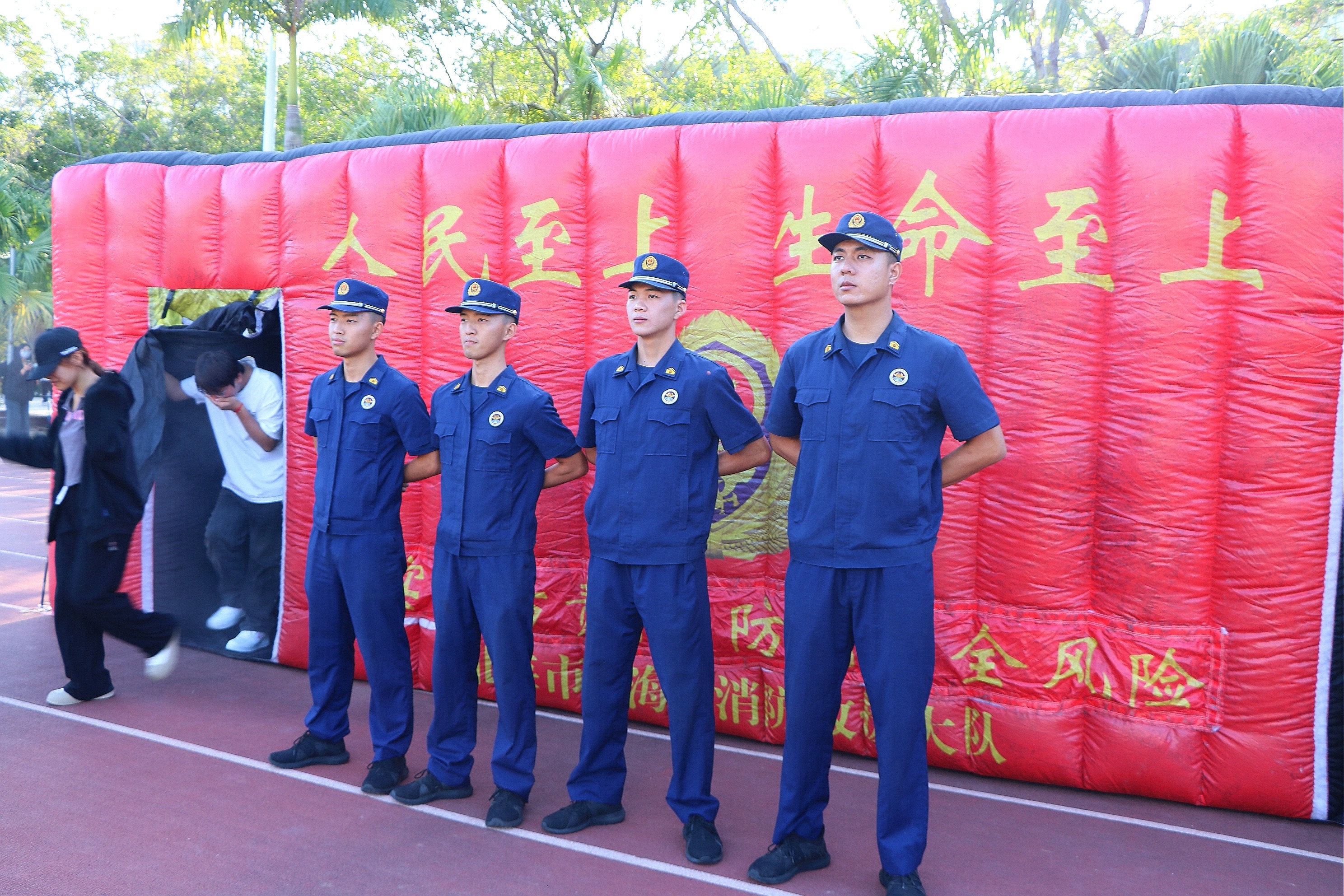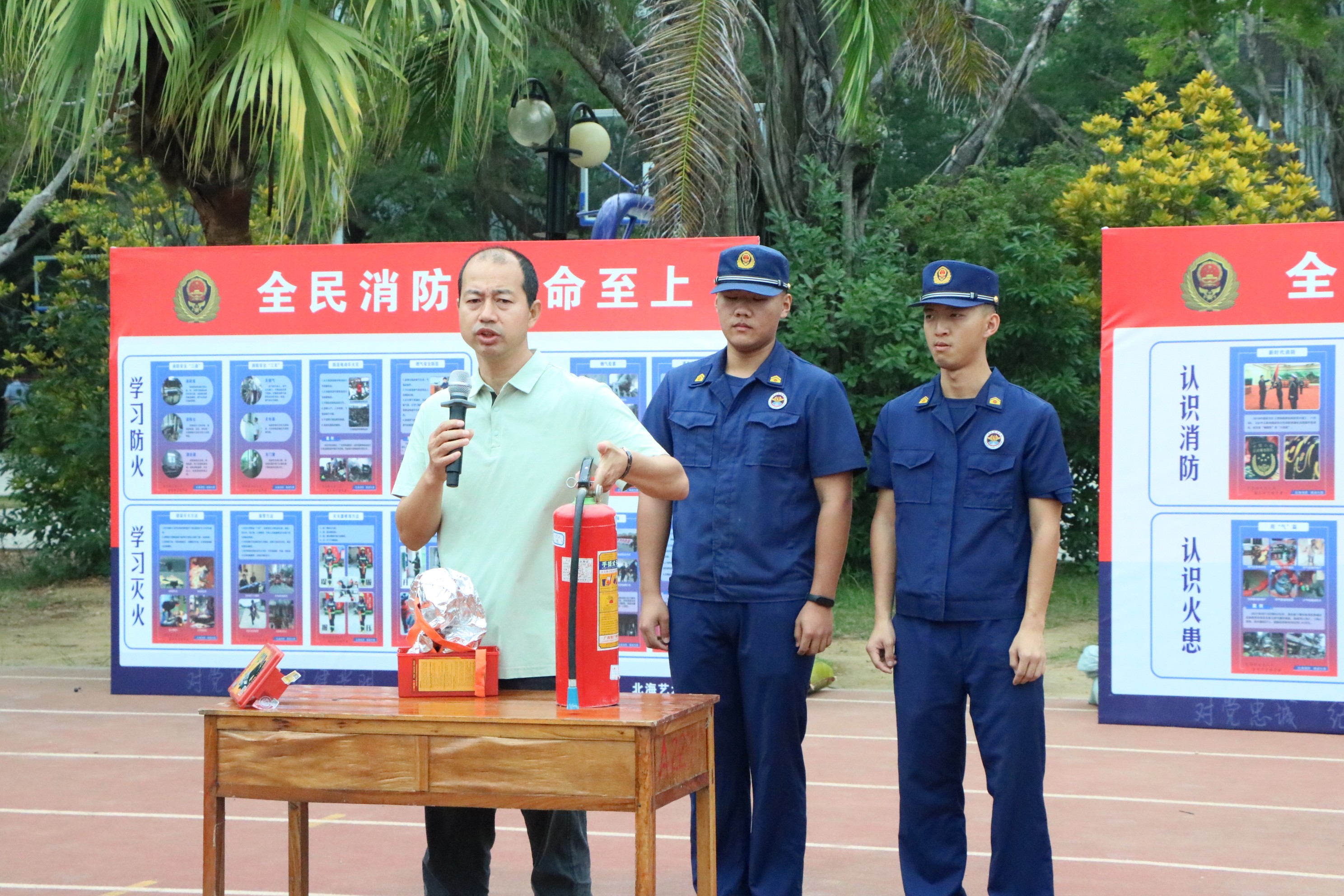 此次演练内容主要包括观看《2024年春季学校火灾疏散逃生演练公开课》、消防知识理论讲解(典型火灾案例警示、灭火器和消防自救呼吸器的使用方法、烟道火场逃生注意事项)和实操作演练(灭火器灭火、穿越烟道模拟火场烟道充帐篷、穿戴过滤式呼吸自救器、心肺复苏)三个部分内容。