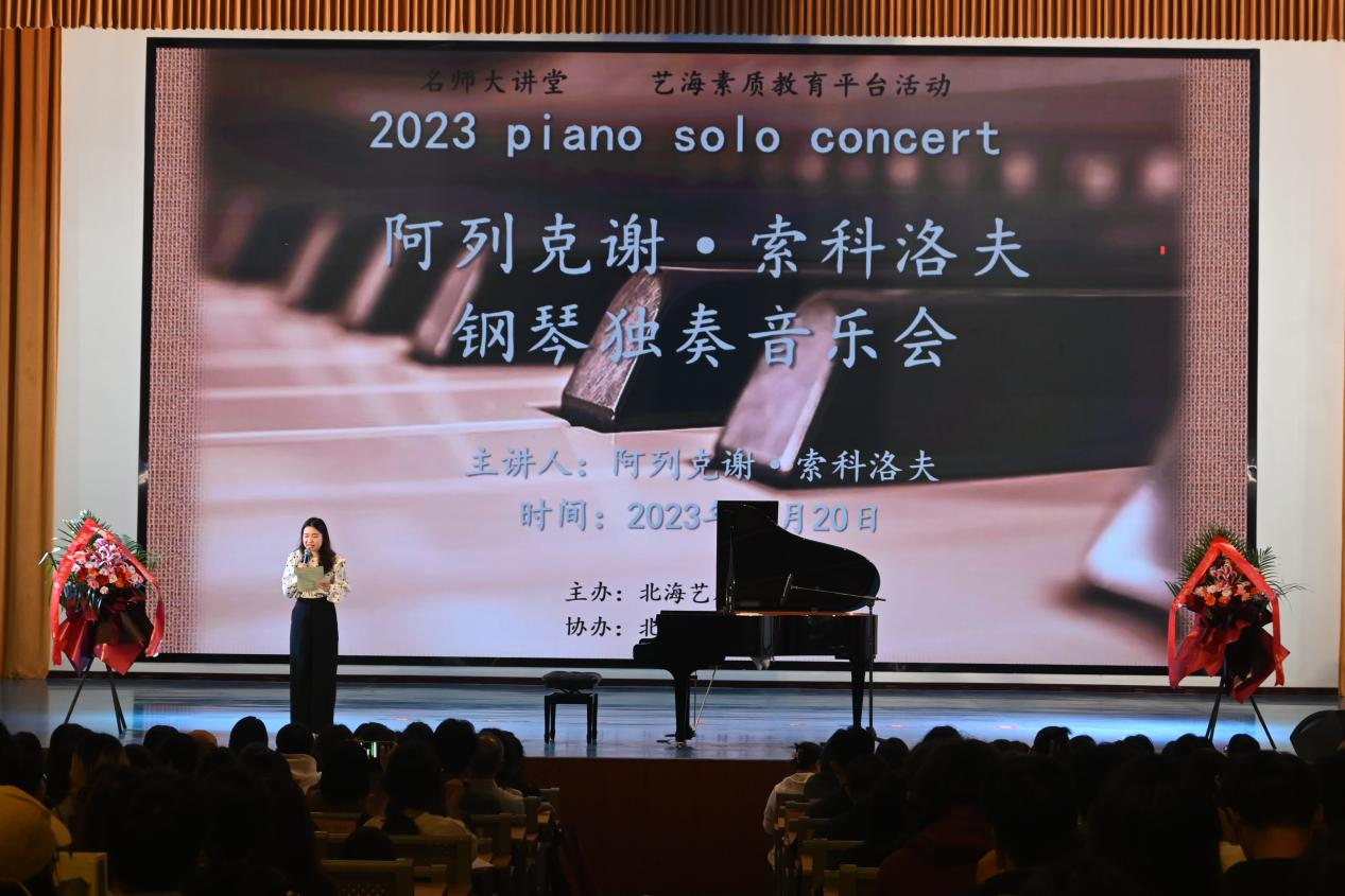 10月20日晚,阿列克谢•索科洛夫教授于我校西校区大礼堂举办个人钢琴独奏音乐会。当晚,北海艺术设计学院总督学王斌、北海市键盘学会会长龙康全、人文教育学院院长熊秀锋、副书记邓欢、副院长李谦等领导出席活动。本次音乐会由人文教育学院艺术教育教研室张靖茜老师主持。