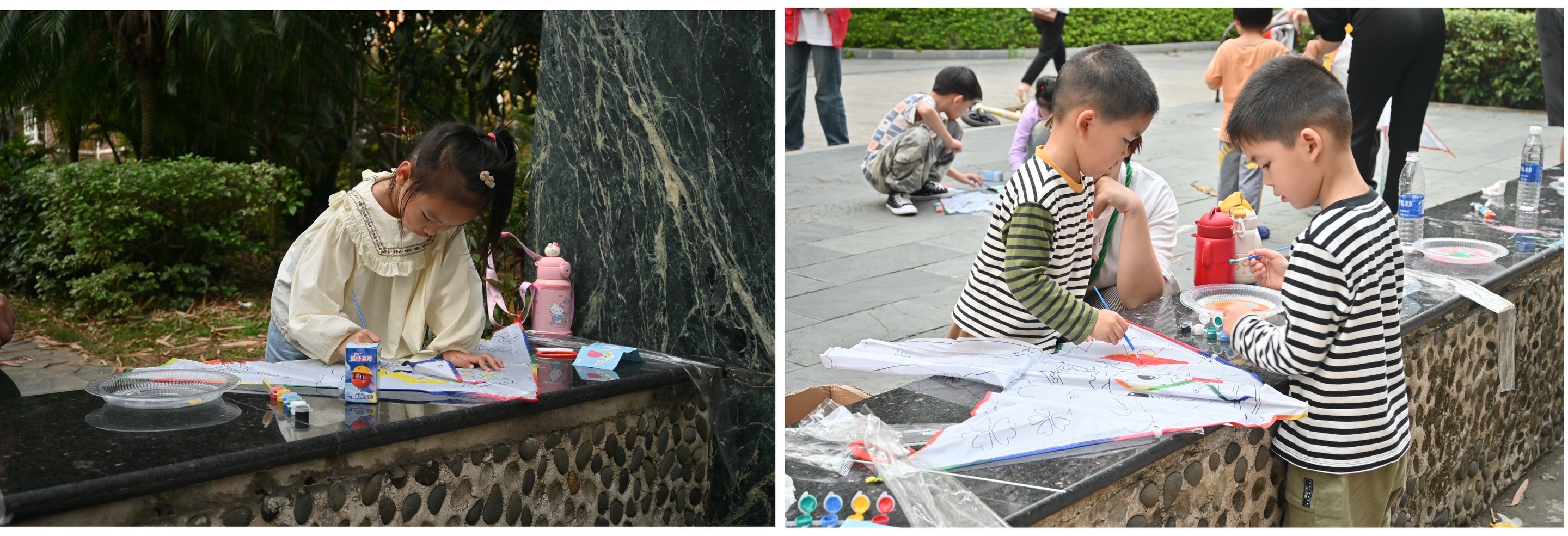 活动开始前,工作人员提前准备了风筝和颜料。活动开始后,橄榄苑小区的广大居民热情参与,特别是小朋友们兴致最高,他们用颜色尽情填充内心的五彩斑斓,创意涂鸦充分展现了他们的想象力和创造力。