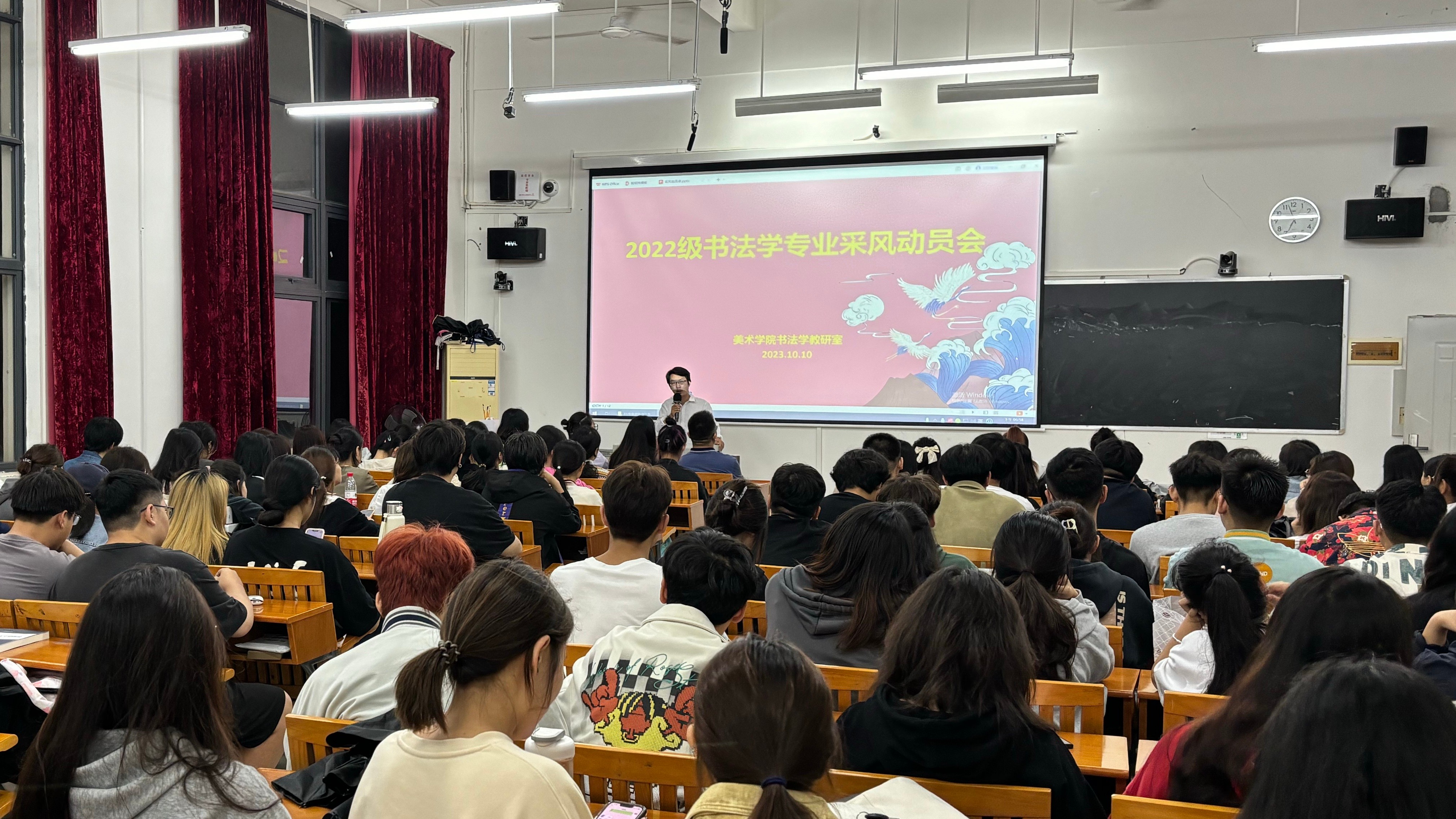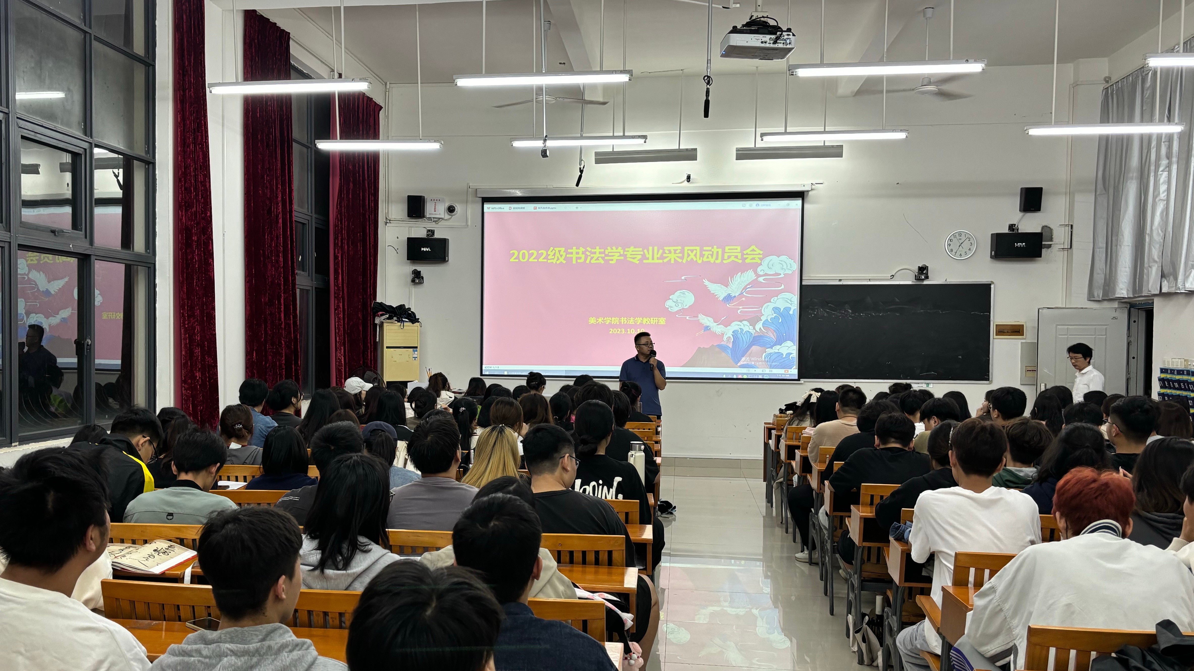 2023年10月10日晚,美术学院书法学教研室针对《专业采风》课程为2022级书法学专业全体同学开展课程相关介绍暨采风动员会。美术学院院长龚为出席,书法学教研室主任苏乃从主持,全体任课教师及班主任参会。