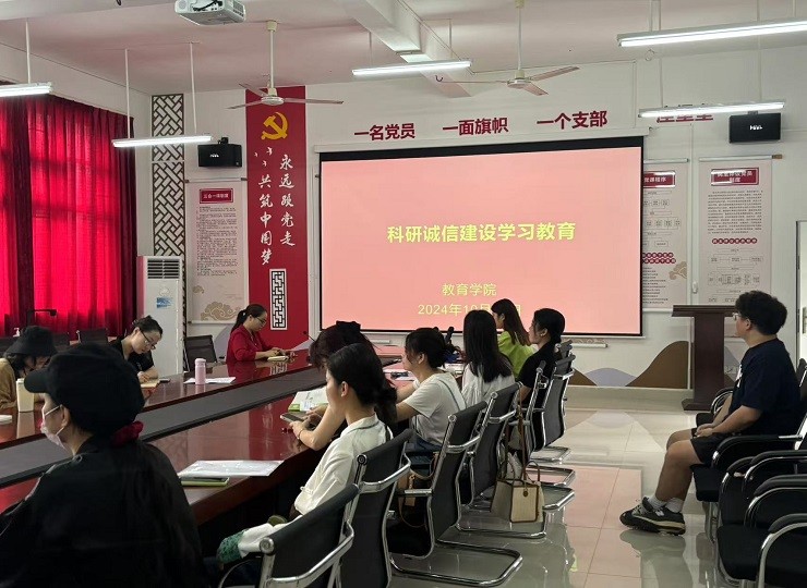 近日,教育学院成功举办了科研诚信建设学习教育宣传月活动。本次活动旨在通过一系列教育学习形式,完善科研诚信工作机制,加强宣传教育,规范工作程序,严查不端行为,强化监督管理,切实增强师生科研诚信意识,优化科研诚信环境,构建健康的学术生态,培育创新文化,涵养优良学风,更好更好水平服务教育教学工作。