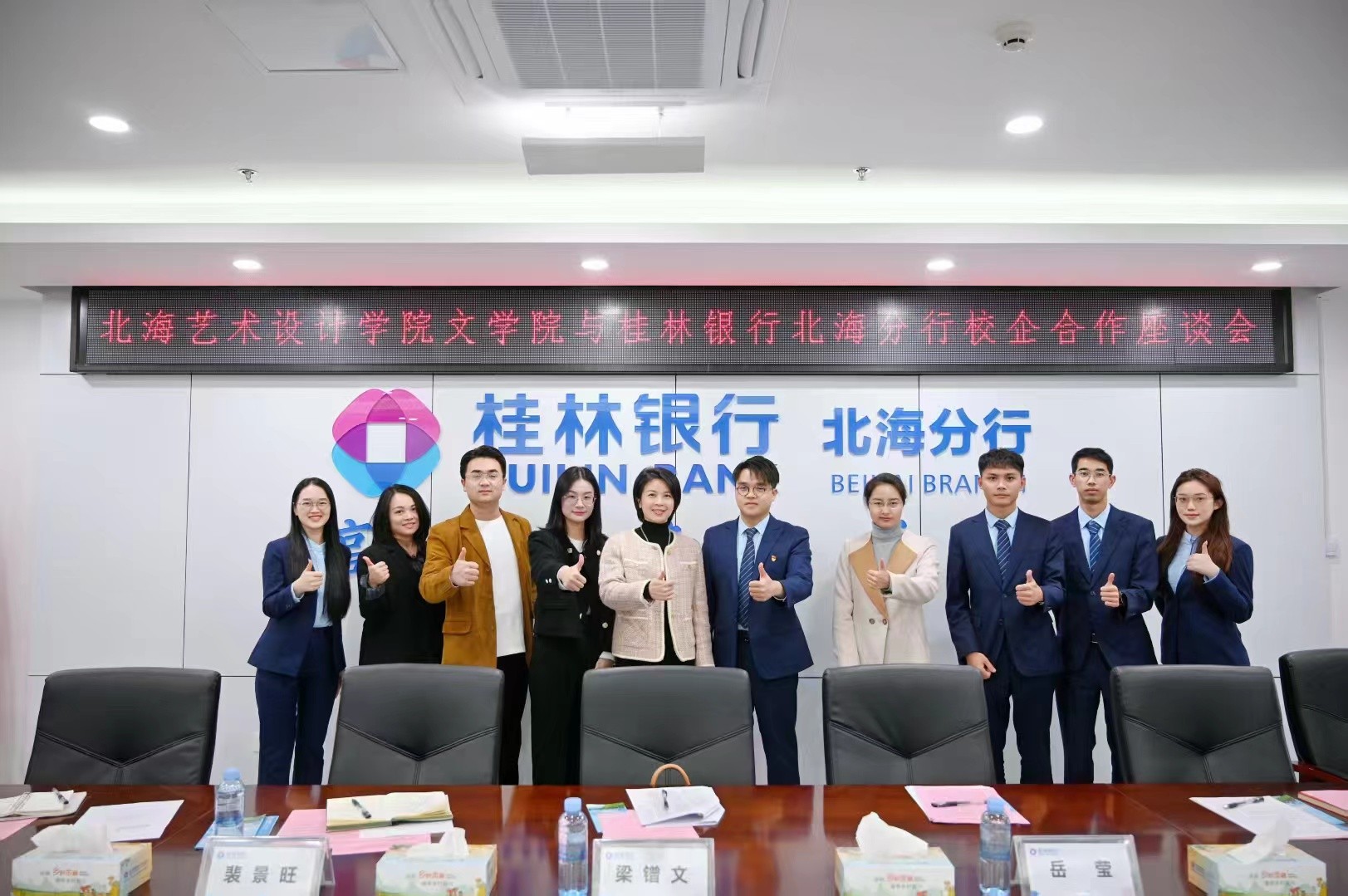 为深化产学研合作,助力学生高质量就业,2025年3月18日上午院领导班子带队赴桂林银行北海分行开展产教融合·协同育人专题调研。本次调研由我院常务副院长梁镨文带队,党支部书记岳莹、副院长蔡森、裴景旺以及我院办公室主任包涵随行。