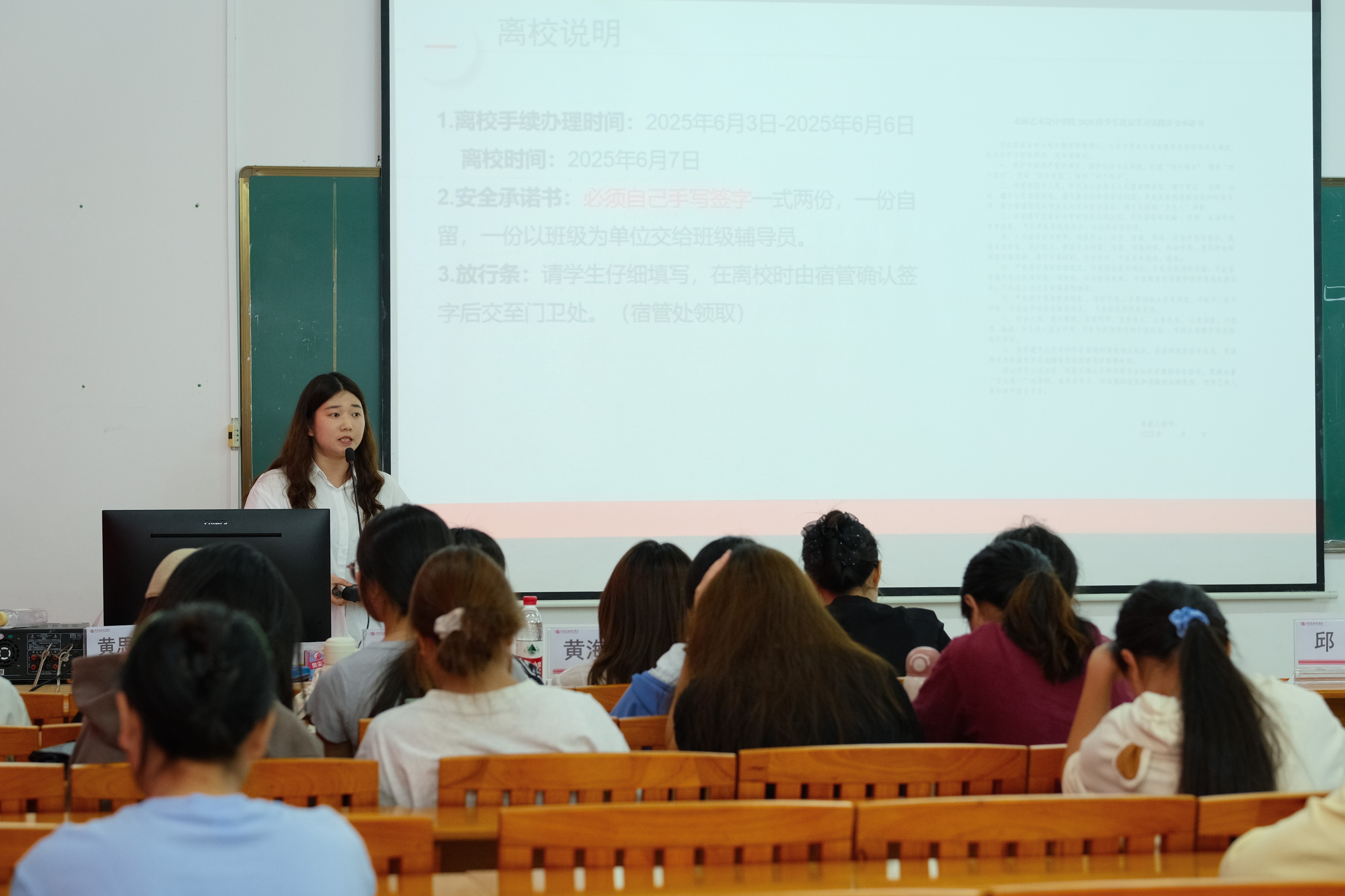 黄思敏书记就学生管理工作进行讲话,介绍学生上京工作安排,强调学生做好离校上京各项工作,严格遵守属地和学校管理制度,提醒学生们注意人身安全,防范电信诈骗,遇到突发情况及时和辅导员取得联系。并且针对同学们提出来的问题进行答疑解惑,使同学们更加了解北京实习实践基地的基本情况和基本教学内容。