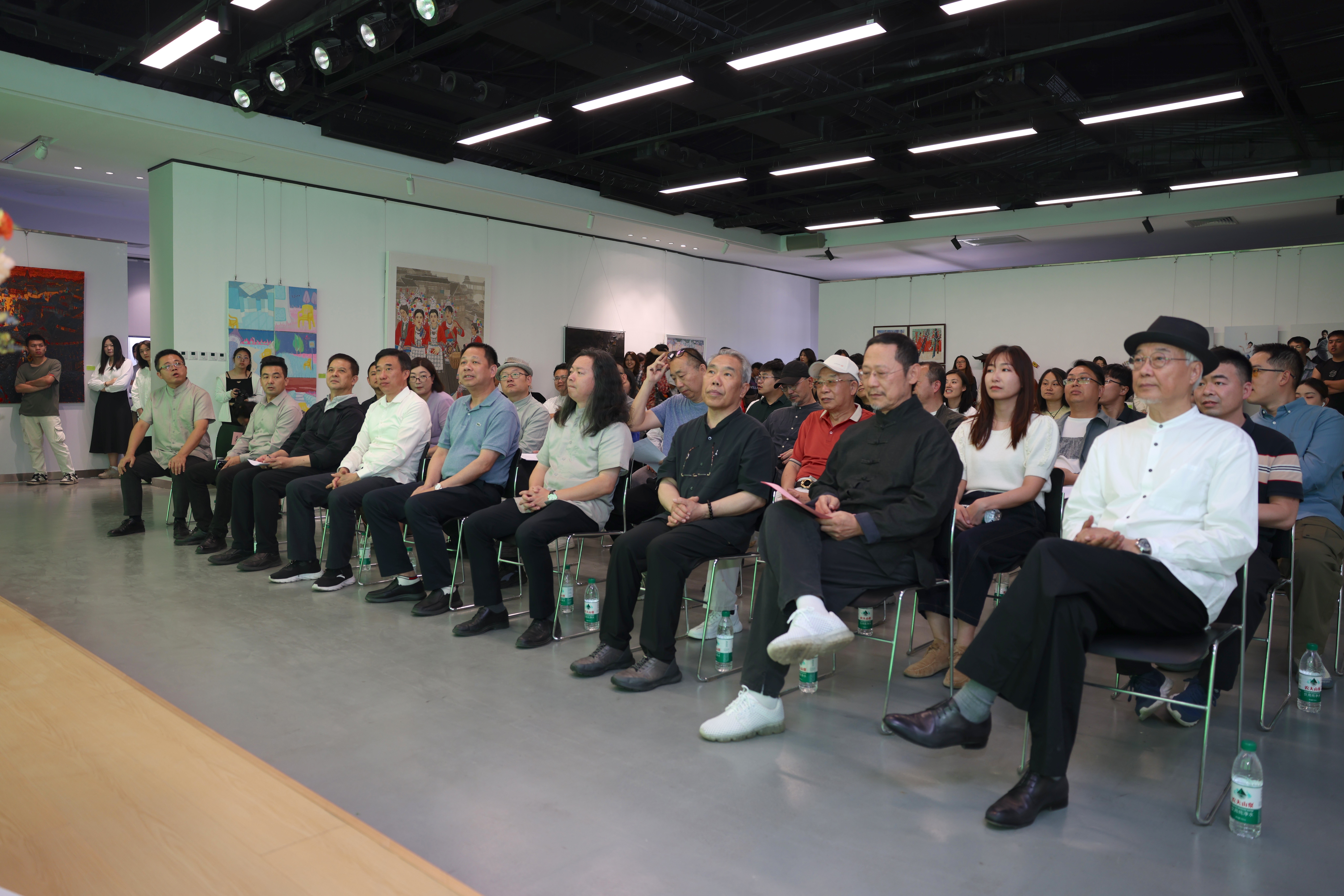 北海艺术设计学院党委书记覃宪儒、北海艺术设计学院常务副校长胡胜、北海艺术设计学院副校长陶立阳、美术学院院长刘斌、中央美术学院原党委副书记、美术学院雕塑专业带头人王少军教授、中国工笔画画学会长陈孟昕教授、清华大学美术学院冯建国教授、中央美术学院姚璐教授、中央美术学院周博教授、中央美术学院王龙江副教授、美术学院崔君旺教授、美术学院执行院长龚为、动画与传媒学院院长孙永辉,以及美术学院外聘教师、教研室负责人、教师、全体毕业生、辅导员等300余人出席了开幕式。