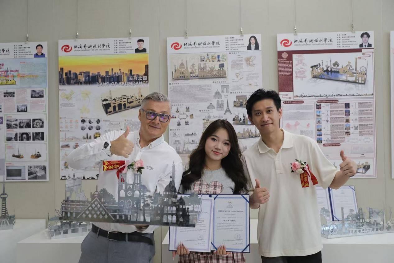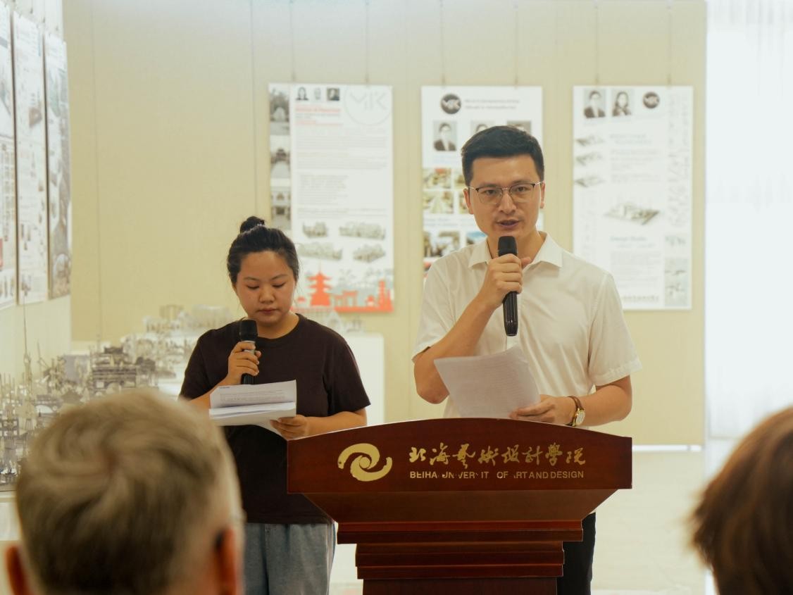 2025年5月23日下午16时,北海艺术设计学院建筑与环境艺术学院与匈牙利佩奇大学工程与信息技术学院短期课程结课成果展在南校区艺德楼八楼中展厅开幕。此次展览为期两周,集中展示了学生们在建筑设计、设计实践等课程中的学习成果。