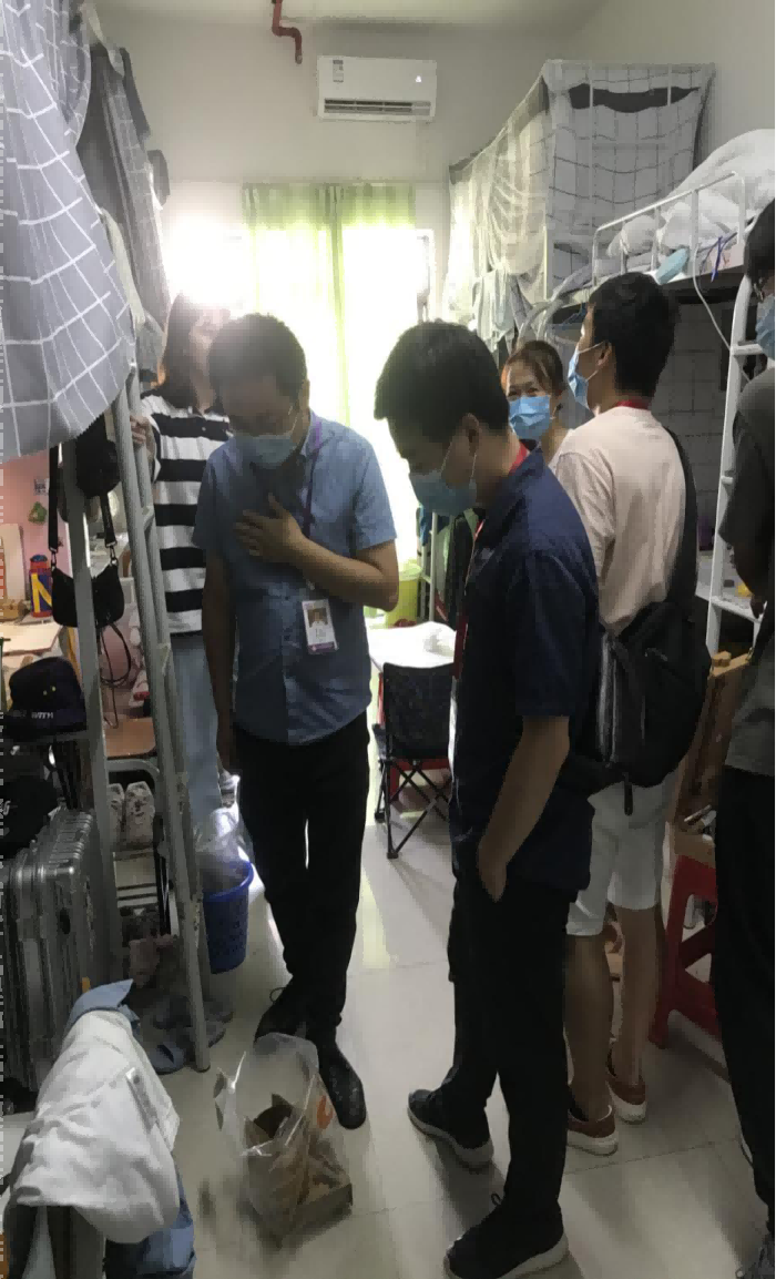 老师们耐心细致地与学生进行交谈,了解学生返校后的生活情况,认真听取学生反映的宿舍问题,能解决的立即解决,不能解决的记录在案并及时上报维修。同时,老师们督促学生要在学习和生活上严格要求自己,疫情防控不能松懈,要注意做好个人的安全防护。此次走访活动是对学生的心理和身体健康的深入关注,发现问题并解决问题,受到了学生一致好评。(王云龙 摄)