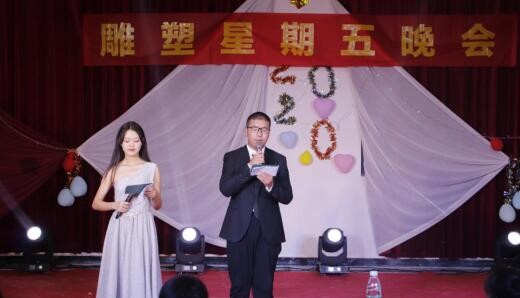 2020年1月3日晚上7:30,我校美术学院雕塑系于西校区艺术楼一楼举办了一场特别的“星期五晚会”。本场晚会由朱余婷和龙睿杰主持,参加本次晚会的有美术学院副院长王习银、办公室主任焦伟娜,教研室主任张湘中、雕塑系副主任金凯婧、教师程宣睿、郭刚以及雕塑系全体师生等。