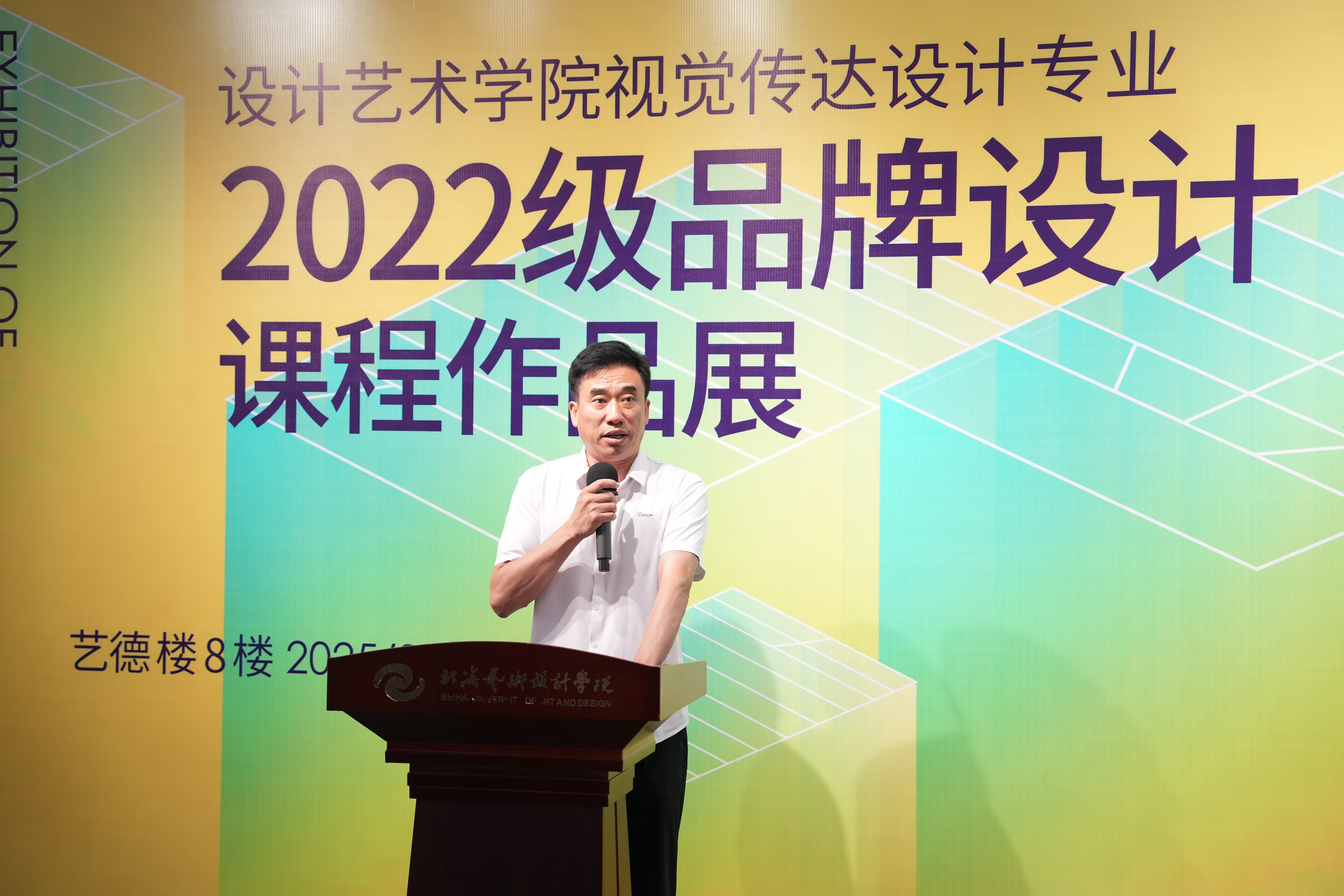 副校长陶立阳为此次展览致辞。他表示,本次作品展集中展现了我校在新文科建设背景下,探索“人工智能+设计教育”创新模式、服务区域经济发展的阶段性成果,生动诠释了“以美育人、以文化人”的办学特色。他强调,面向未来,设计教育要持续深化产教融合,加强与地方政府、企业的紧密合作,打通“作业-作品-产品”的价值转化链条,将智能技术深度融入课堂,推动教育与科技、产业、创新、实践的融合发展。并希望同学们以此次展览为新起点,始终坚守“设计为民”的初心,在未来职业道路上,既要成为商业价值的创造者,更要勇做真善美的传播者。