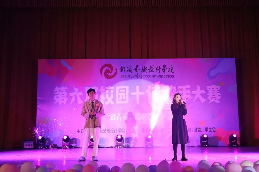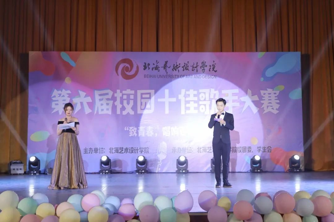 北海艺术设计学院“致青春,唱响百年华诞”第六届校园十佳歌手大赛于12月4日晚上19:30在西校区大礼堂拉开了决赛的序幕。我们有幸邀请到的领导嘉宾有:团委书记唐良春老师、学工处副处长唐道明老师以及各二级学院各处室老师。出席现场的评委老师有宋慧敏老师、唐道明老师、黄金老师、杨美琪老师、徐凯华老师、王云龙老师、陈万奇老师、余黎泓老师、王慧老师、雷勇老师、蒋志珍老师。