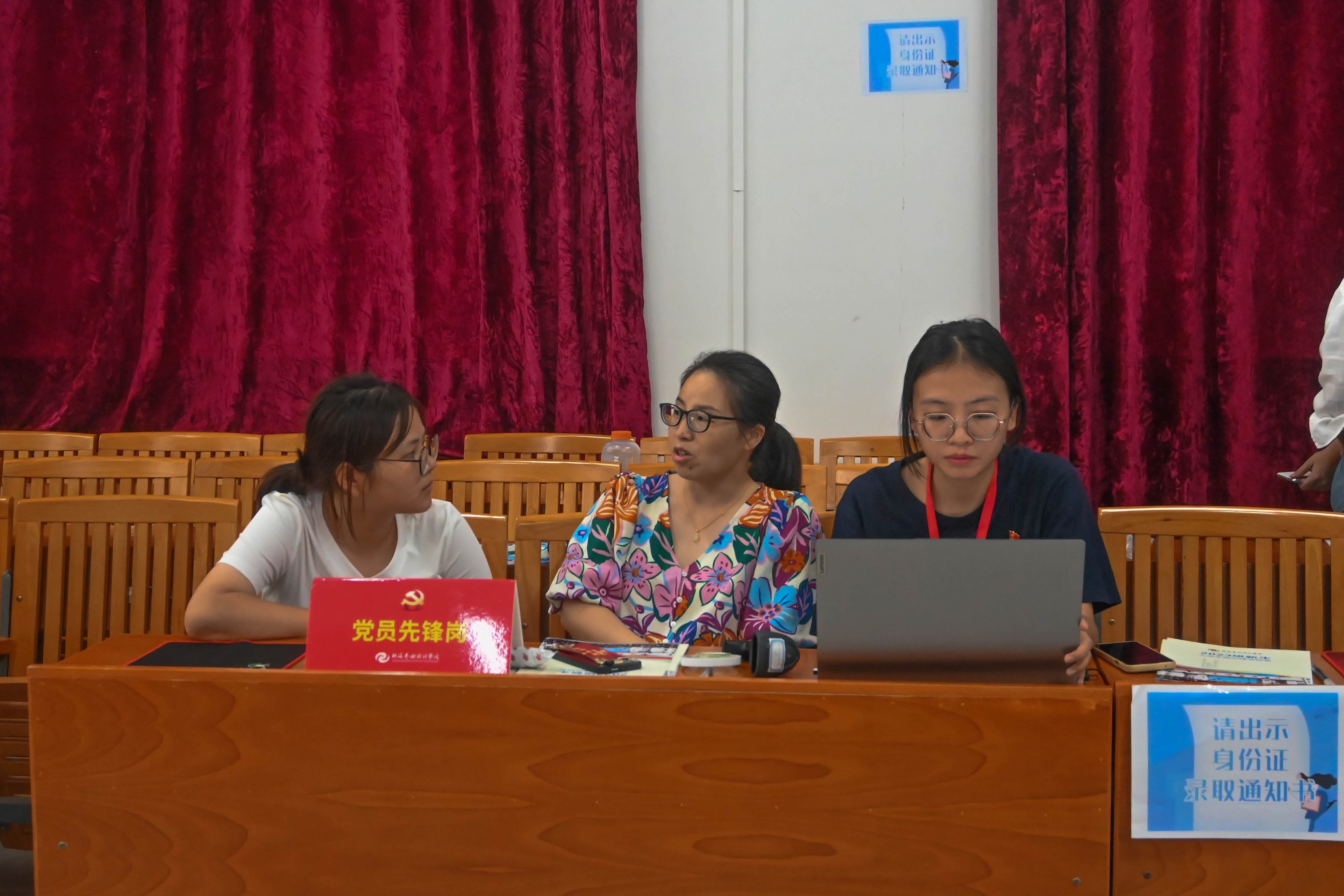 在学院迎新点的党员先锋岗,党员教师统一佩戴党员徽章,亮明党员身份,以饱满的热情投入到迎新工作中。党总支书记熊秀峰亲临迎新现场,指导迎新工作,并为新生答疑解惑。党员同志们用热情的微笑、耐心的言语为新生提供暖心周到的服务,累计服务新生达五百余人次。