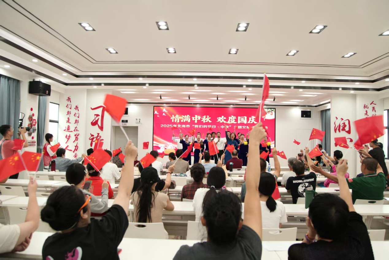 2025年北海市“我们的节日·中秋”主题文明实践活动于9月29日上午在茶亭路社区热闹开启。本次活动以“情满中秋 欢度国庆”为主题,文学院志愿者全程主导服务,通过非遗展演、手工体验、趣味互动等丰富形式,为社区老年居民精心呈现了一场融合文化底蕴与节日温馨的双节盛宴。