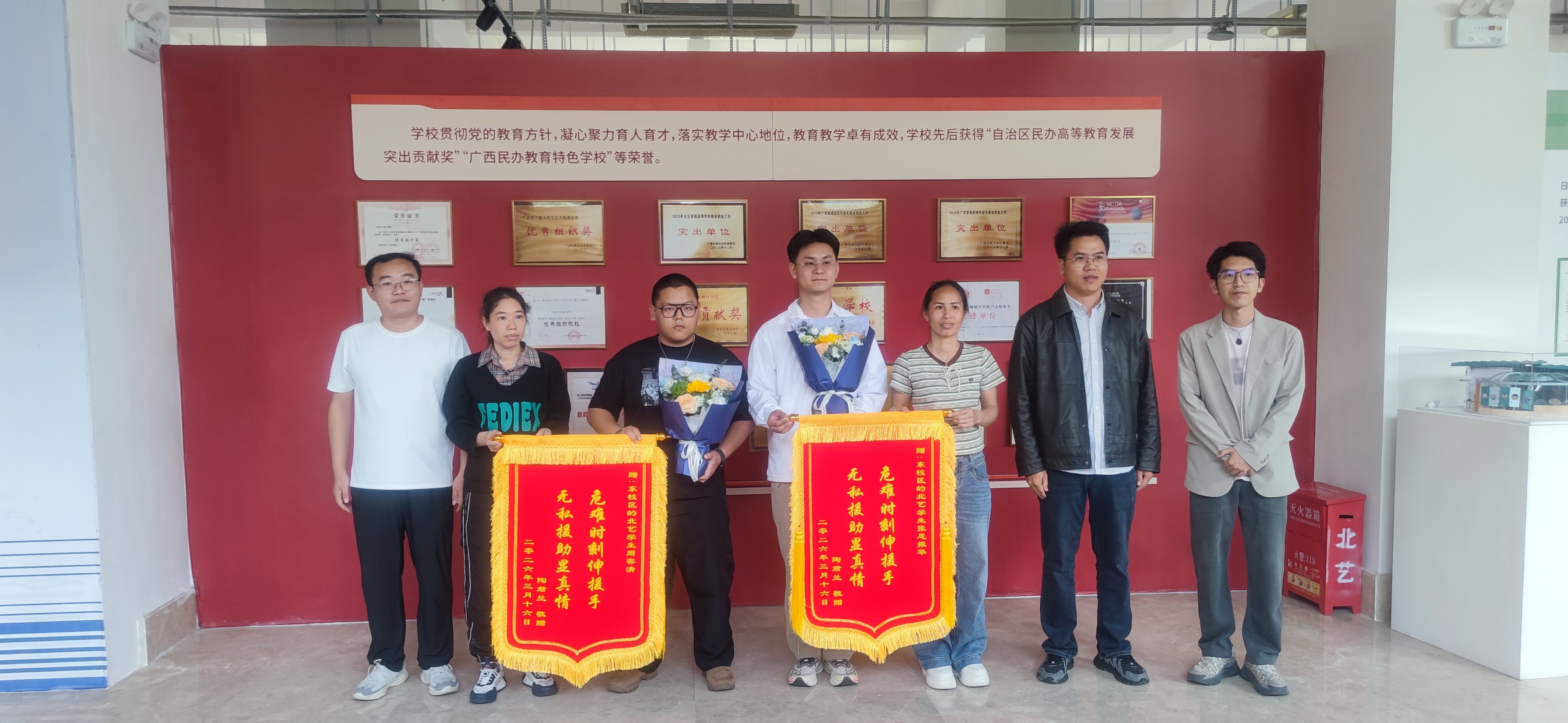 传媒艺术学院领导、美术学院领导及伤者家长与见义勇为学生合影