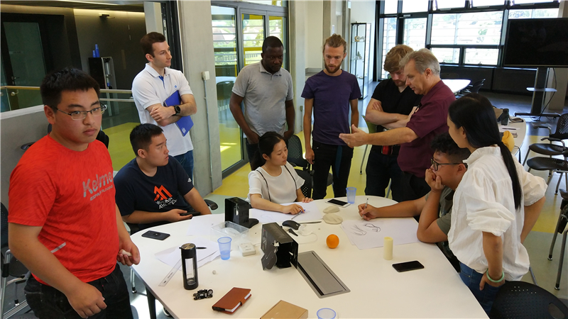 跟去年第一届 Summer School 一样,没有任何繁冗的形式或过渡,第二天马上就进入到严格和紧张的课程学习当中,所有的课程、要求、进度都是早已计划安排好的,配备的教师团队相当强悍:设计学院院长 伊恩 坎贝尔教授亲自负责这次活动项目的导入及各门课程的衔接;《人机工学》 由 罗素 马歇尔教授讲授;《设计学》 由高级讲师 斯蒂文 萨默斯基尔博士讲授;《互动体验》 由高级讲师 瓦尔 米歇尔博士, 克里斯 帕克博士讲授;《手绘》课程由 讲师 安东尼 依兰德博士讲授;3D打印技术的介绍和3D扫描实践由张方今博士负责。所有的课程都以拉夫堡大学的方式展开。