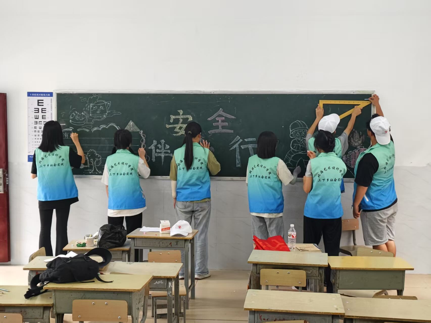 接下来,乡村振兴促进团与基层服务践行团同步开启温暖行动。乡村振兴促进团实地考察,深入田间地头,倾听农户心声。并用墙绘板报讲述乡村故事,融入社会主义核心价值观、乡风文明新风,深刻展现出“民族要复兴,民族必振兴”这一主题深刻。